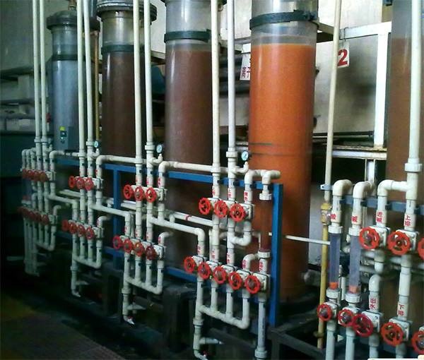 離子交換法是我國(guó)目前應(yīng)用最廣泛的水處理技術(shù)之一。其所用的樹脂是一種高分子聚合物,按官能團(tuán)的性質(zhì)分為強(qiáng)酸、強(qiáng)堿、弱酸、弱堿四類,按其基團(tuán)性質(zhì)分為陽(yáng)離子交換樹脂和陰離子交換樹脂。陽(yáng)離子交換樹脂是指分子中含有酸性基團(tuán)的離子交換樹脂,能使分子中的H+等與溶液中的其他陽(yáng)離子交換。陰離子交換樹脂是指分子中含有堿性基團(tuán)的離子交換樹脂,能使分子中的OH-與溶液中的其他陰離子交換。離子交換法常與反滲透膜法結(jié)合使用,廢水先經(jīng)反滲透膜除去90%左右的溶質(zhì),然后用離子交換樹脂處理。這種結(jié)合使用的方法很適合于濃縮水、高含鹽水、純水的處理,也用于回收重金屬離子、放射性廢水及有機(jī)廢水處理。
